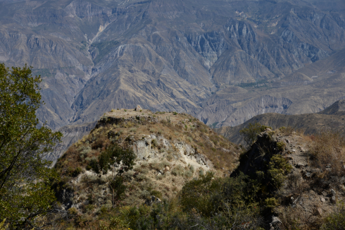 Als ich einen Bauern fragte, wo denn die Ruinen von Mayu Mayu seien, schaute er mich mit fragendem Gesicht an. Das Internet hatte mir Mayu Mayu genannt, da besteht kein Zweifel. Nur sprach der junge Heimatforscher auf YouTube kein Quechua und kannte sich scheinbar wenig in seiner Heimat aus, als dass er den Namen richtig hätte benennen können. Statt einer Antwort gab es bei dem Bauern also zunächst nur Fragezeichen. Doch ein paar Lautverschiebungen brachten die Erleuchtung: „Meinst Du Muyu Muyu? Das ist oben auf dem Berg. Da, wo die Straße nach Tauria einen Bogen beschreibt, kurz vor dem gesprengten Tor, da geht links ein Pfad den Berg hoch. Da ist es.“ „Wie ist es da? Warst Du dort?“, wage ich zu fragen. „Wegen der paar Ruinen gehe ich doch nicht den Berg rauf“, lautete die Antwort. „Ich war da noch nie. Aber ich weiß, dass da manchmal ein paar Bauern ihr Vieh hochtreiben.“