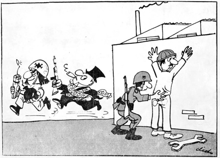 Es gibt Bilder von Arbeitern, die am Tag des Tancazo zur Unterstützung der UP-Regierung bewaffnet ins Zentrum Santiagos marschierten; ihre Bewaffnung bestand aus Stöcken. Die in den rechten Medien „enthüllte“ schwere Bewaffnung der Sicherheitskomitees der Cordones Industriales bestand aus Stöcken, Molotow-Cocktails und vereinzelten kleinkalibrigen Pistolen. Bei den immer wieder kolportierten Panzern der militanten Arbeiter handelte es sich um mit Stahlplatten verkleidete Gabelstapler, mit deren Hilfe man die Angriffe der Banden von Patria y Libertad abwehren wollte. Doch die propagandistische Ente von einem von den Linken initiierten Bürgerkrieg verfehlte ihre Wirkung in Teilen der Bevölkerung und des Militärs nicht. Der ständige Druck diente letztendlich vor allem der Terrorisierung der Arbeiterbewegung ebenso wie der Verunsicherung der Bevölkerung insgesamt.